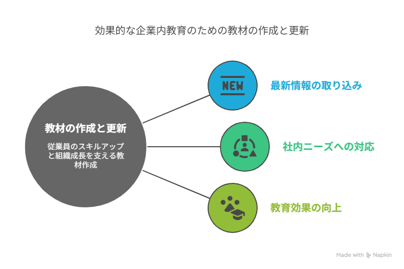 まず、第一に挙げられるのが教材の作成と更新です。これは、単に既存の教材を用いるだけでなく、社内のニーズや業界のトレンドに合わせて最新の情報を取り入れることが求められます。常に時代の流れを意識し、最も効果的な教育プログラムを提供するための基盤作りが必要です。