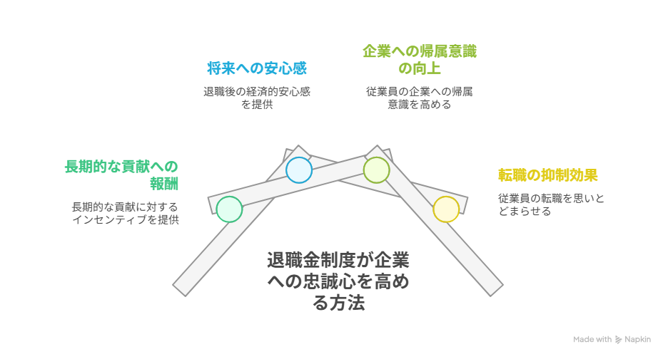 次に、従業員が退職後の生活設計を立てやすくなる点が挙げられます。退職金があることで、将来の資金計画をより具体的に立てることができ、生活の安定感が増します。特に中小企業に勤める従業員にとって、将来の不安を軽減する要素となり得ます。