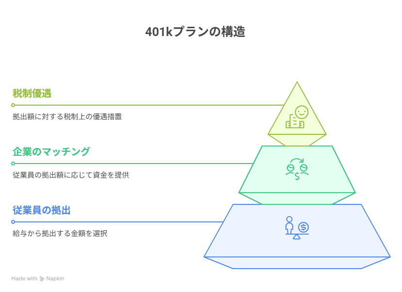 これにより、実質的な手取り収入が増えるというメリットがあります。また、中小企業にとっては、401kプランは従業員の退職後の生活保障の一環として大いに役立つものと言えます。