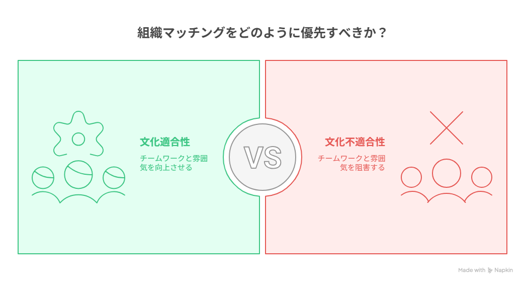 採用活動においてもう一つ重要な点は、職場文化や企業価値観への適合性です。文化適合性を選考の一要素に含めることで、入社後の定着率を高め、社員の満足度向上につながる可能性があります。特に中小企業では、一人ひとりの影響力が大きいため、組織とのマッチングを重点的に確認することが求められます。