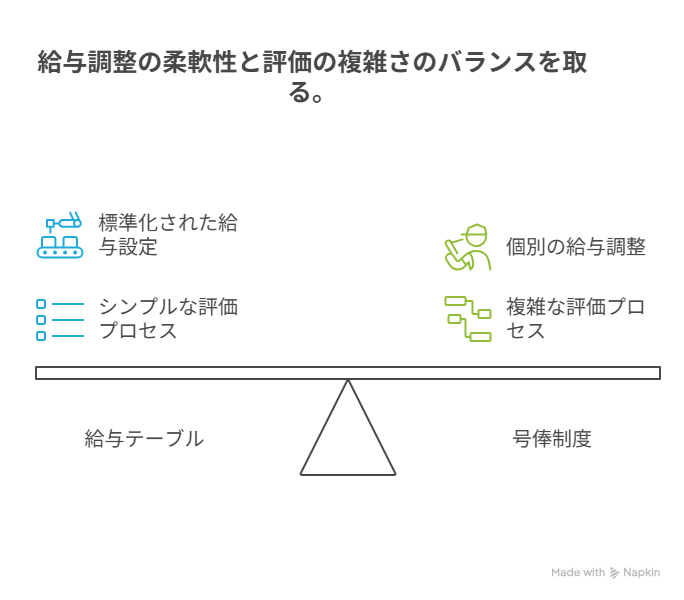 総じて、号俸制度は構造的な給与決定を助ける重要な手段ですが、現代の動的な労働市場においては更なる柔軟性と革新が求められます。企業は、この制度をうまく取り入れることで、公正で効率的な人材マネジメントを実現し、長期的には競争力の維持を図る必要があるのです。